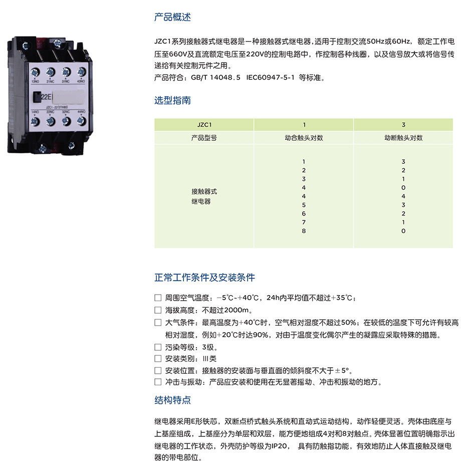 JZC1 系列接触器式继电器_接触式继电器_继电器_工业控制与保护_产品中心_开云体育电气股份有限公司