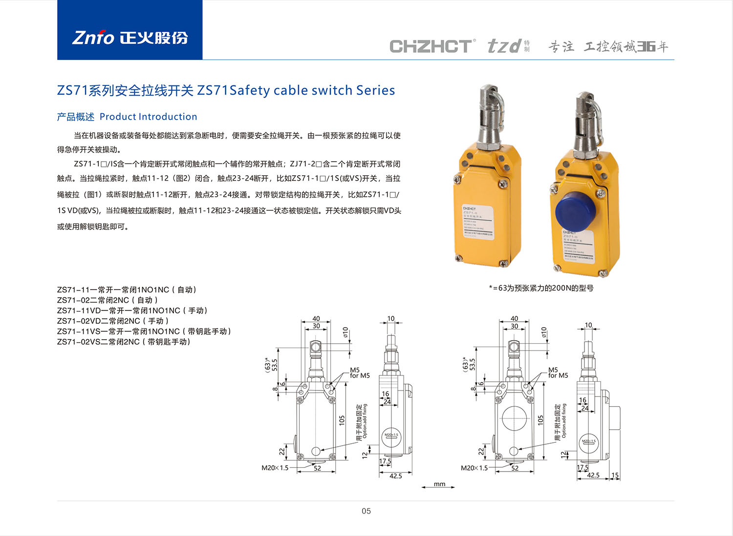 ZS71安全拉线开关_拉绳开关_行程/微动/跑偏/拉绳/超速_工业控制与保护_产品中心_开云体育电气股份有限公司