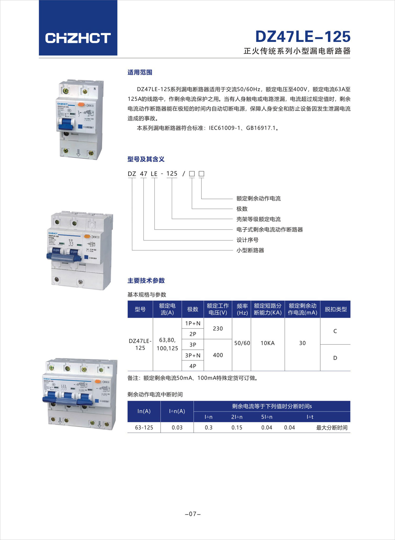DZ47LE-125小型漏电断路器产品说明书