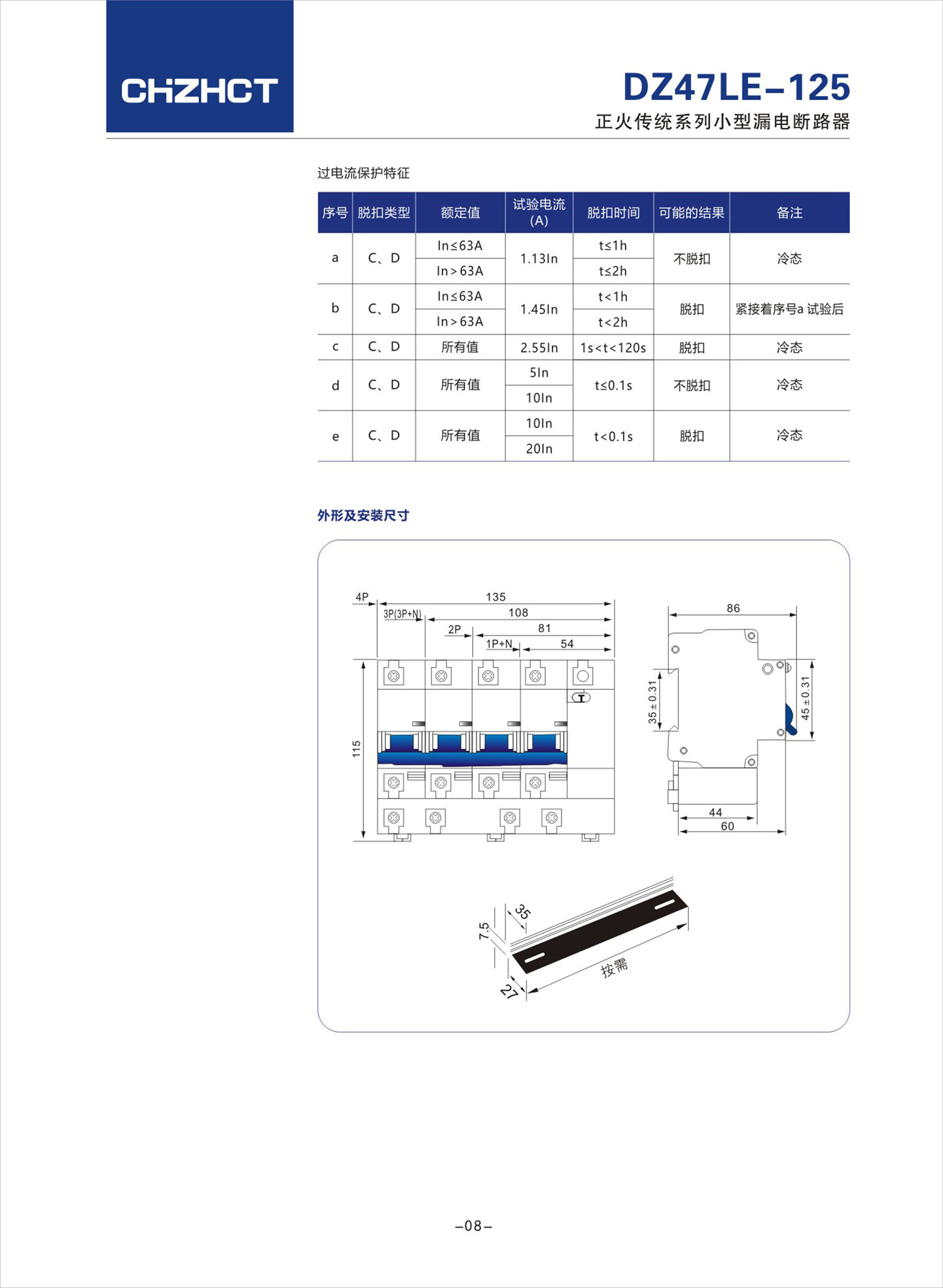 DZ47LE-125小型漏电断路器_漏电小型断路器_终端电器_产品中心_开云体育电气股份有限公司
