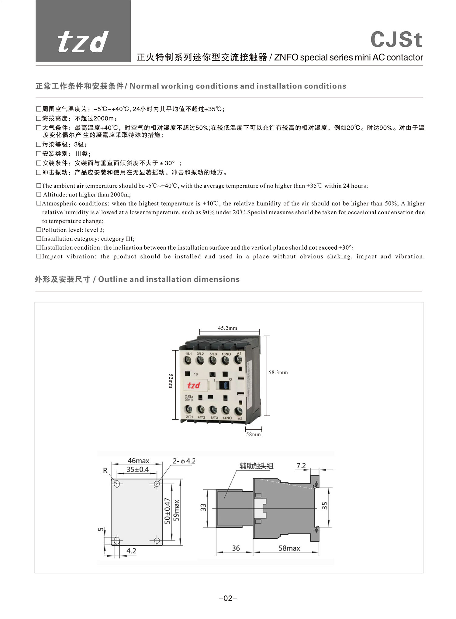 CJSt 开云体育特制系列迷你型交流接触器产品说明书