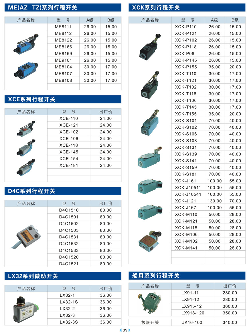 ME(AZ TZ)、XCE、D4C、XCK行程、LX32微动开关